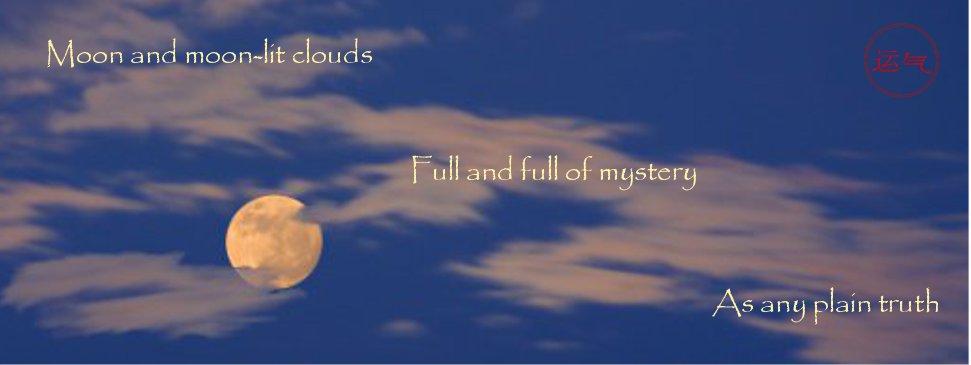 Moon and moon-lit clouds Full and full of mystery Like any plain truth